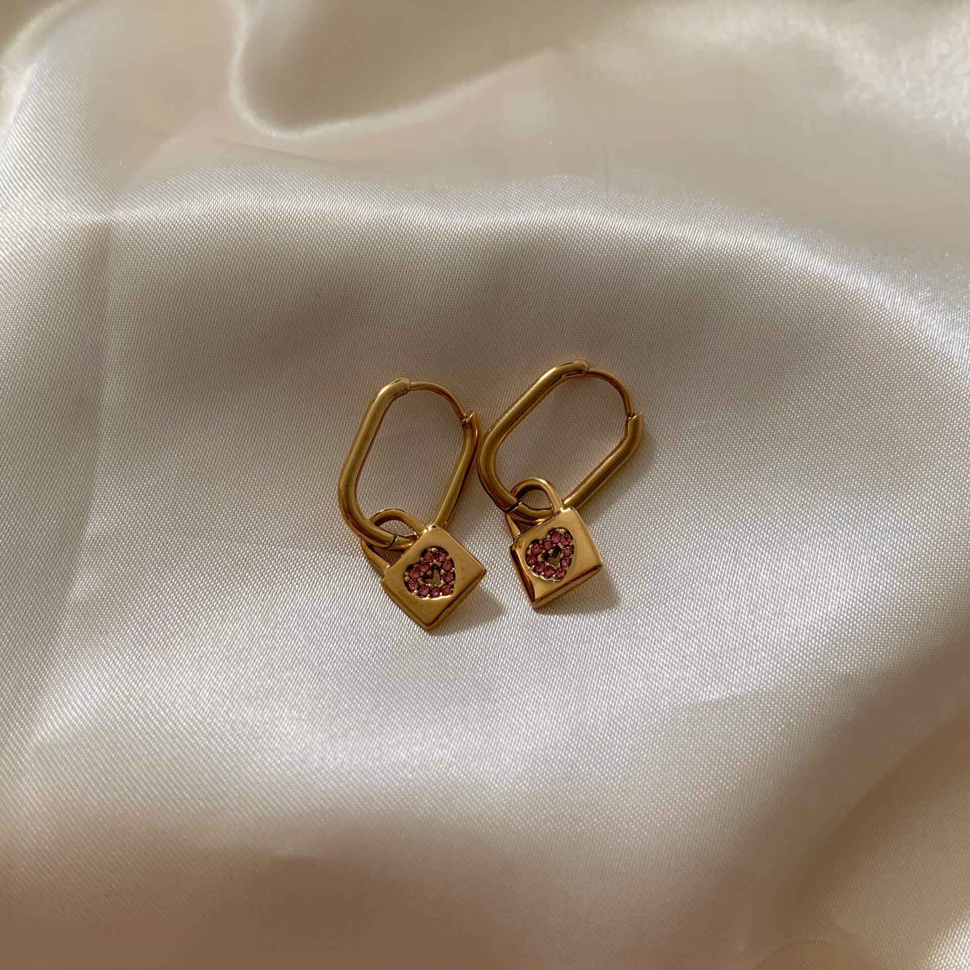 earrings oval hoops pink hearts