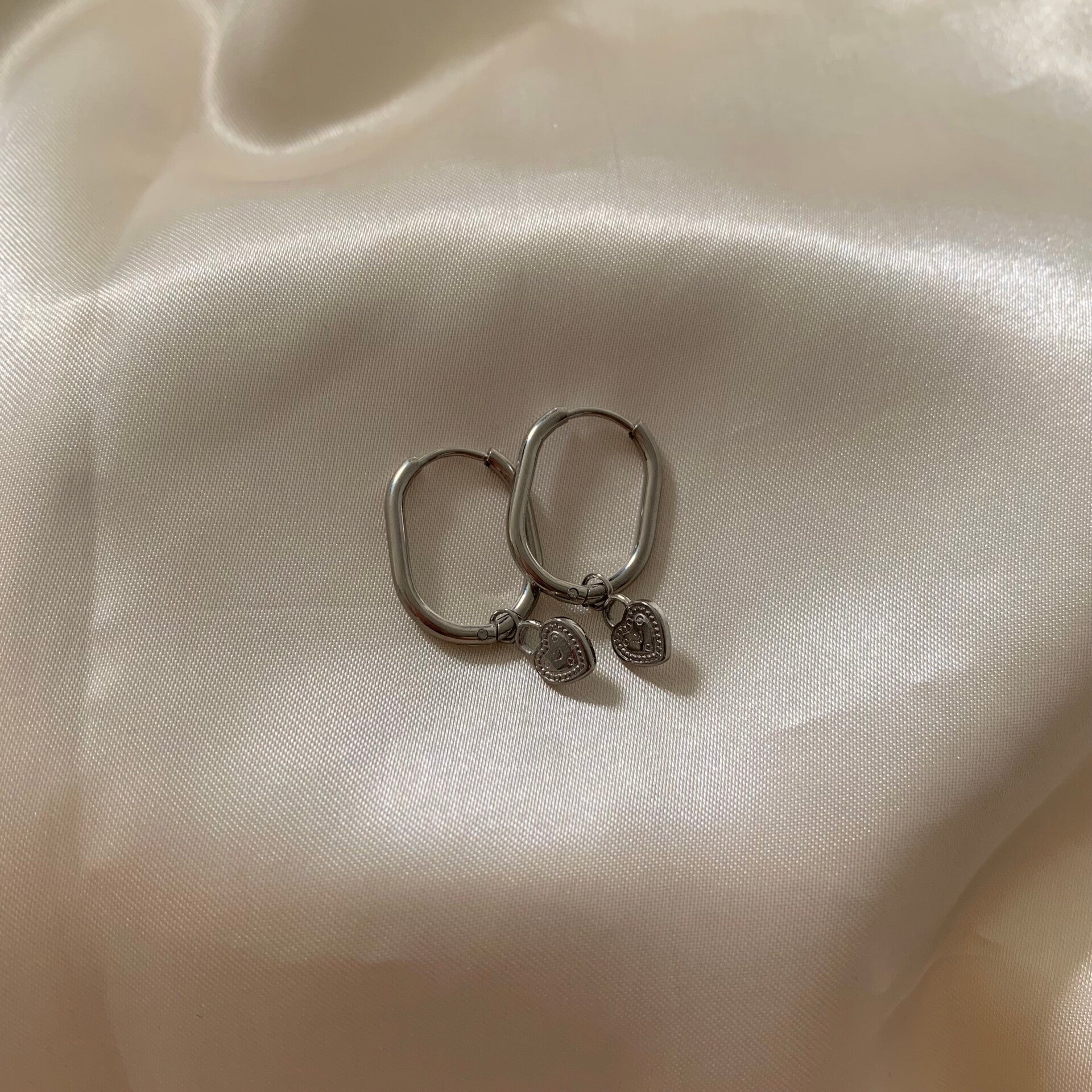 earring oval hoops silver hearts