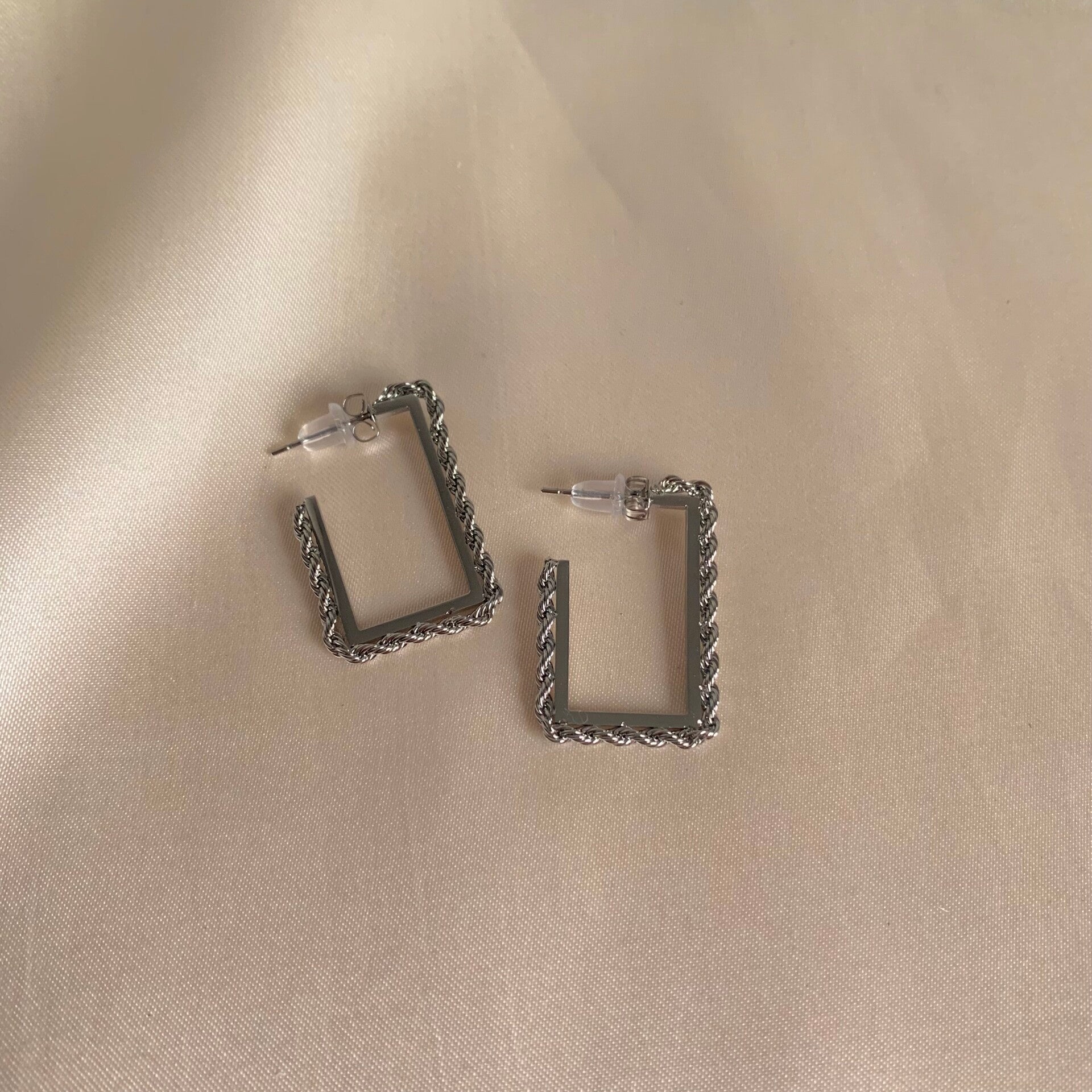 earrings squared silver twisted
