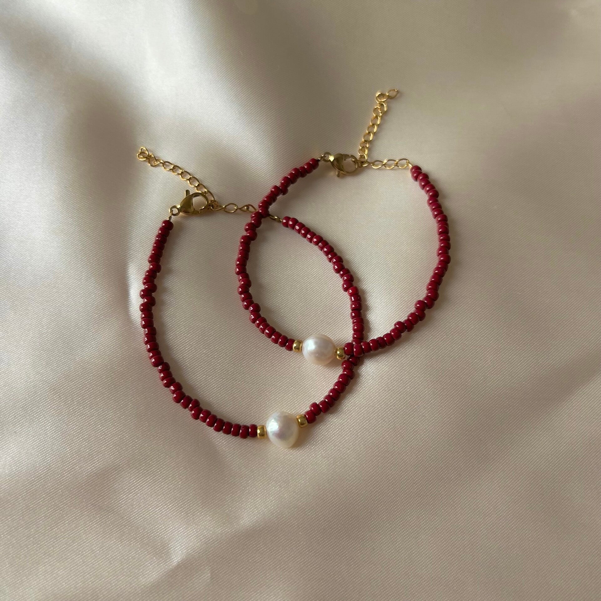 bracelet red beads & pearl gold